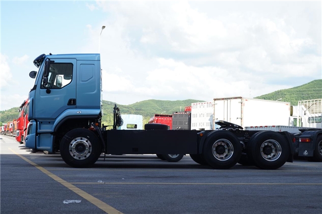 在动力与续航上,乘龙H5超轻版纯电牵引车同样适配高强度运输需求,搭载法士特高效电机与变速箱,优化动力传输效率,既能应对复杂路况下的行驶需求,又能减少非必要的能耗损耗。搭配宁德时代400度长寿命动力电池,在标准载重工况下,单次续航轻松突破300公里,满足中短途物流运输需求。