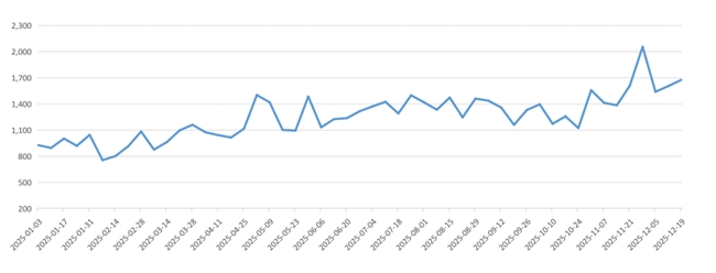 与此同时,大宗商品市场的波动与资源配置效率备受关注。《新华·山东港口大宗商品指数运行报告(2025)》依托山东港口这一全国最重要的大宗商品集散地,发布了该体系涵盖原油、铁矿石、焦炭、钢坯等八大类产品的14只高频指数,通过日、周、月、年多维度数据,精准捕捉大宗商品市场的“脉搏”。报告显示,2025年山东港口原油罐容活跃度指数震荡上行,并在11月28日冲高至2054.64点,较基期涨幅达105.46%,反映出原油存储、流通及远期交易的持续活跃。铁矿石市场虽经历波动,但山东港口铁矿石进出港指数直观反映了市场需求的韧性。此外,硫磺现货交易价格指数受新能源需求崛起及地缘因素推动,在12月11日飙升至全年高点,较年初大幅上涨168.97%,突显了大宗商品市场在能源转型背景下的重新定价逻辑。这些精准、及时的数据,有效提升了市场透明度,为产业链上下游企业的决策提供了关键参考,增强了中国在大宗商品领域的定价影响力。